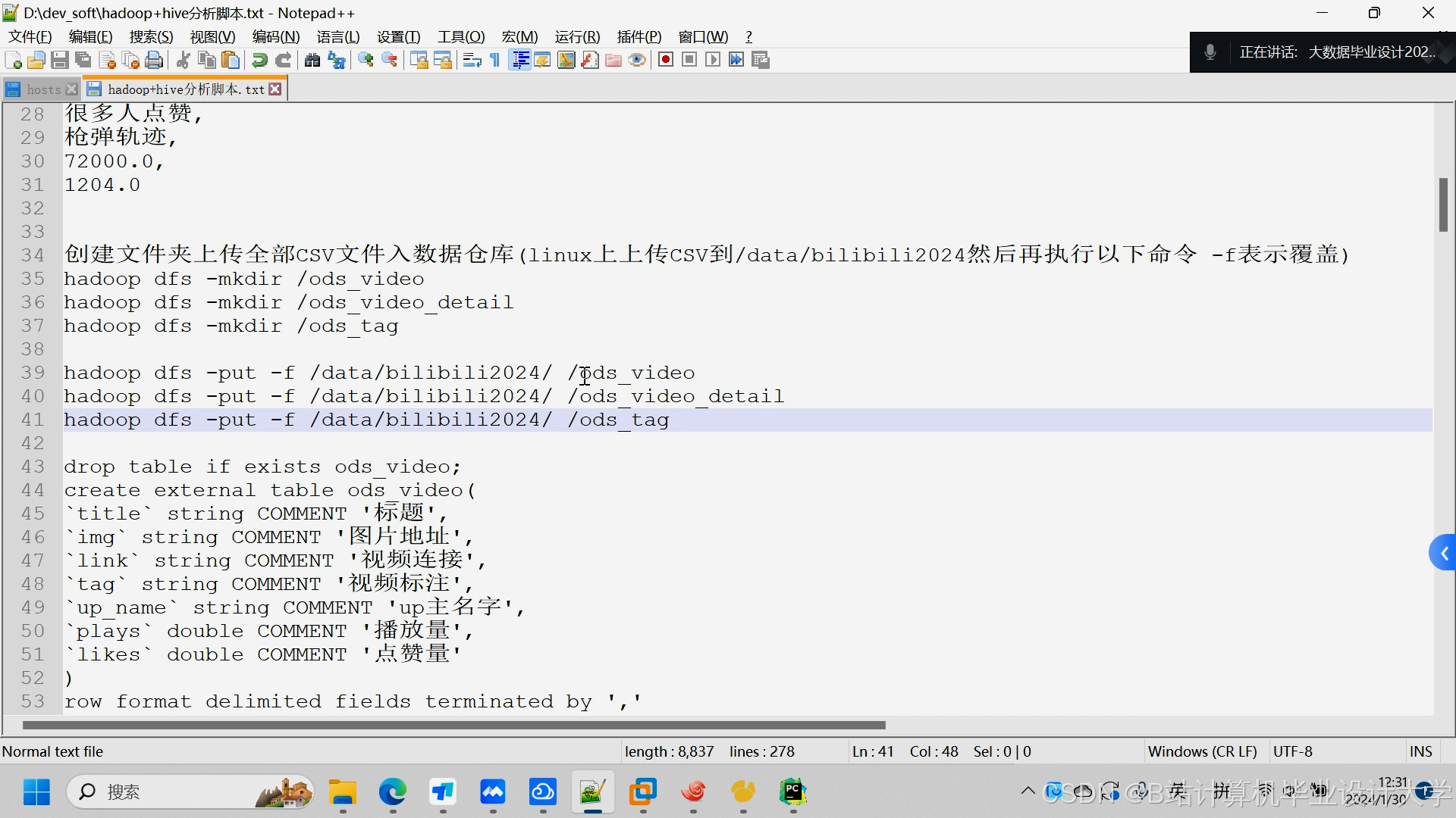 - HDFS分区策略:按数据来源分区,提升跨平台查询效率。例如,Hive表