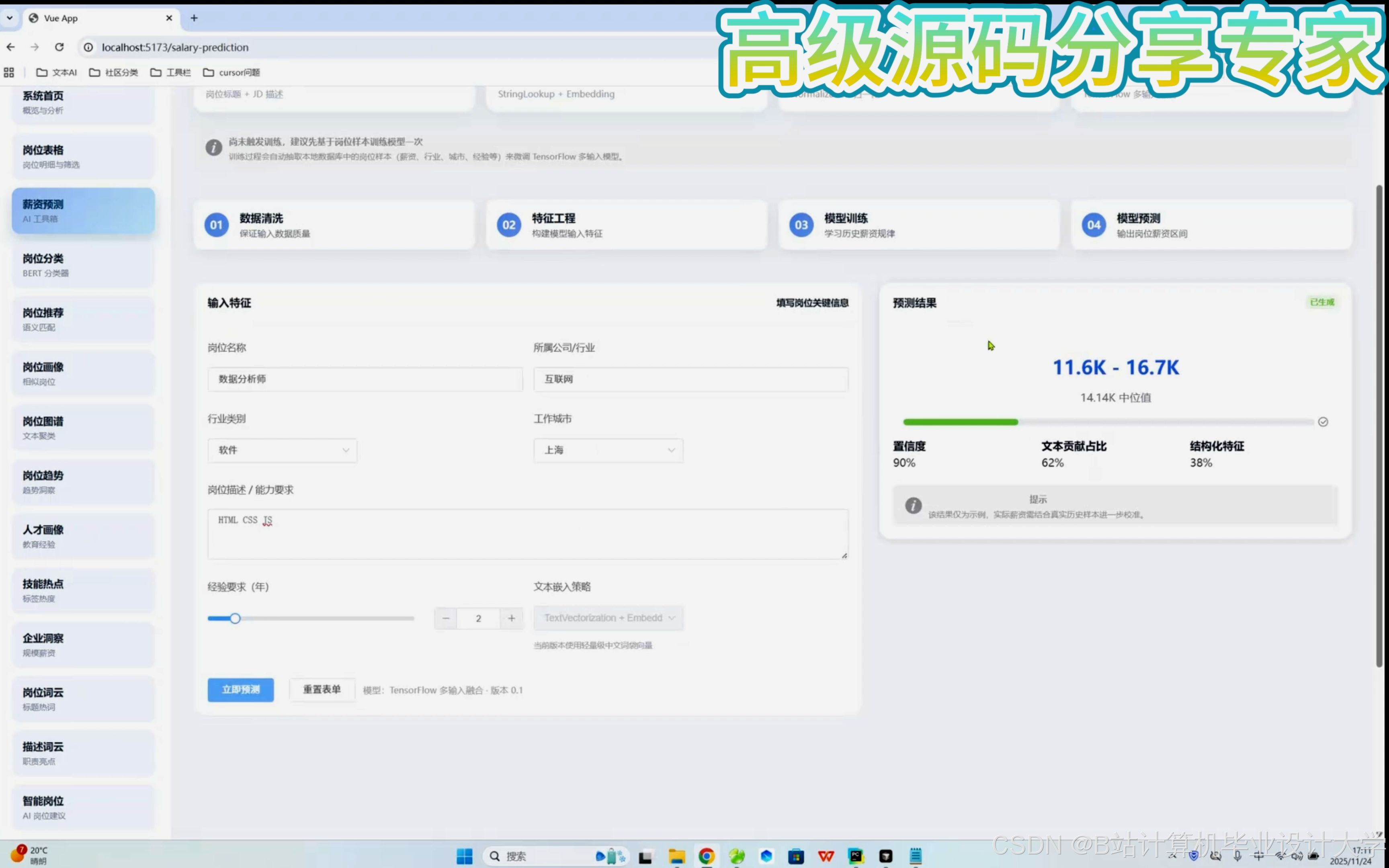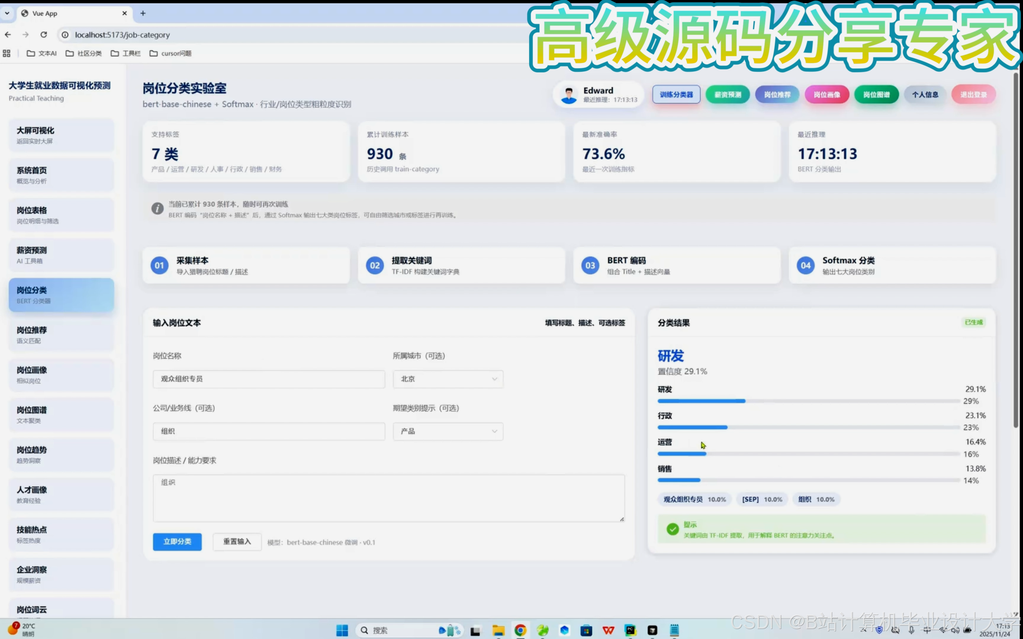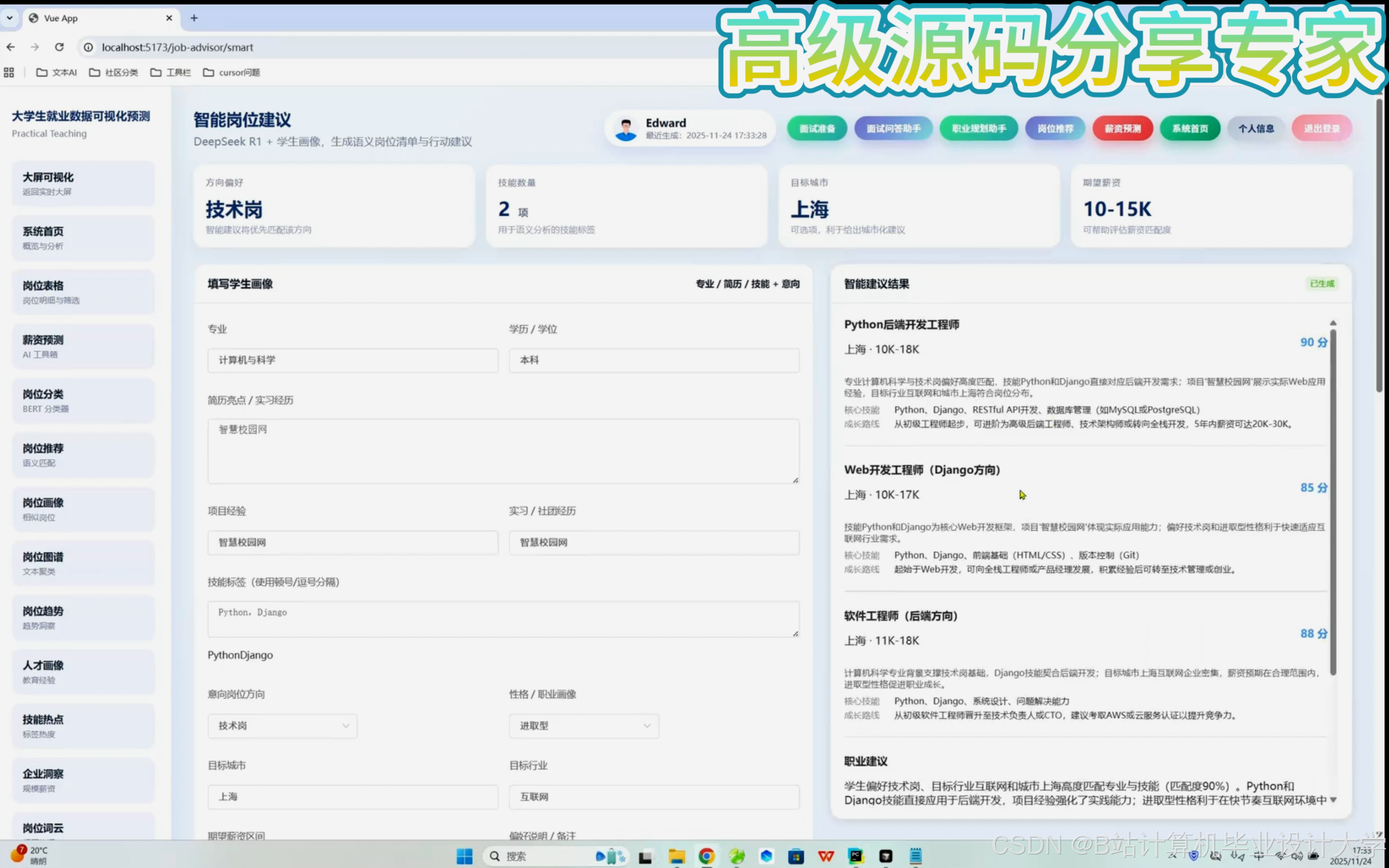 - 数据集:某高校2020-2025年就业数据(120万学生记录、80万职位、2.4亿条行为日志)。