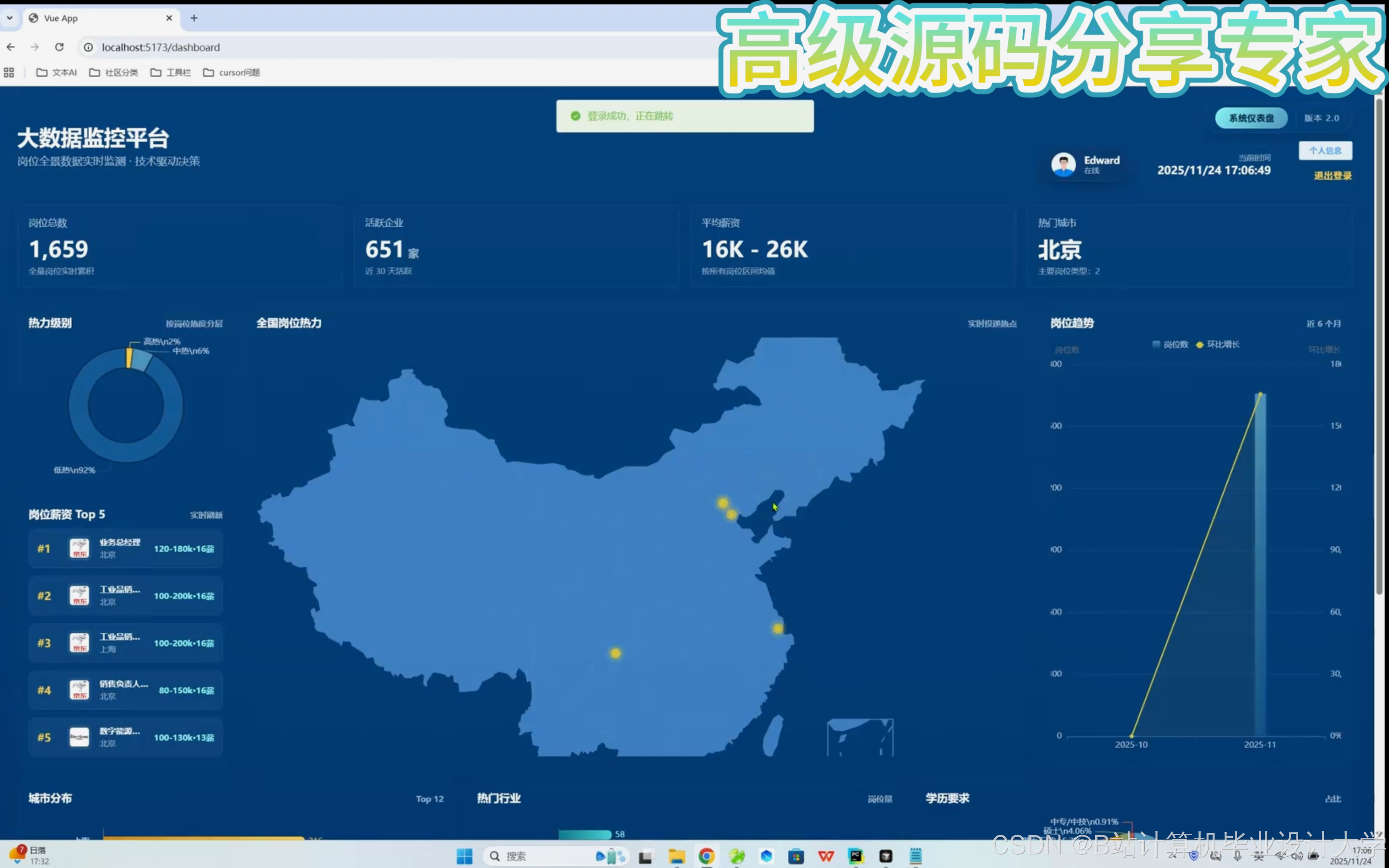 - 可视化分析报告:动态展示就业市场趋势与关键指标。
