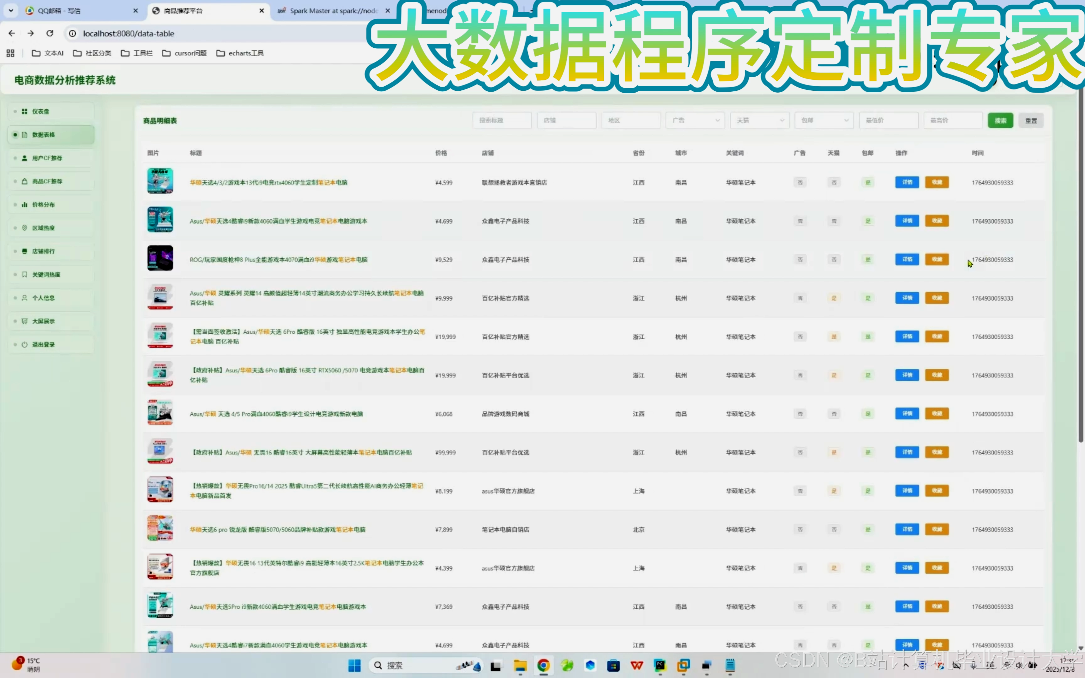 电商行业竞争激烈,企业需通过数据驱动决策优化运营策略。传统数据分析工具难以处理海量用户行为、交易及商品数据,且缺乏实时性与可视化能力。本系统旨在构建一套基于大数据技术的电商分析平台,整合多源数据,挖掘用户偏好与市场趋势,并通过可视化大屏为运营团队提供决策支持,同时实现个性化商品推荐。 -