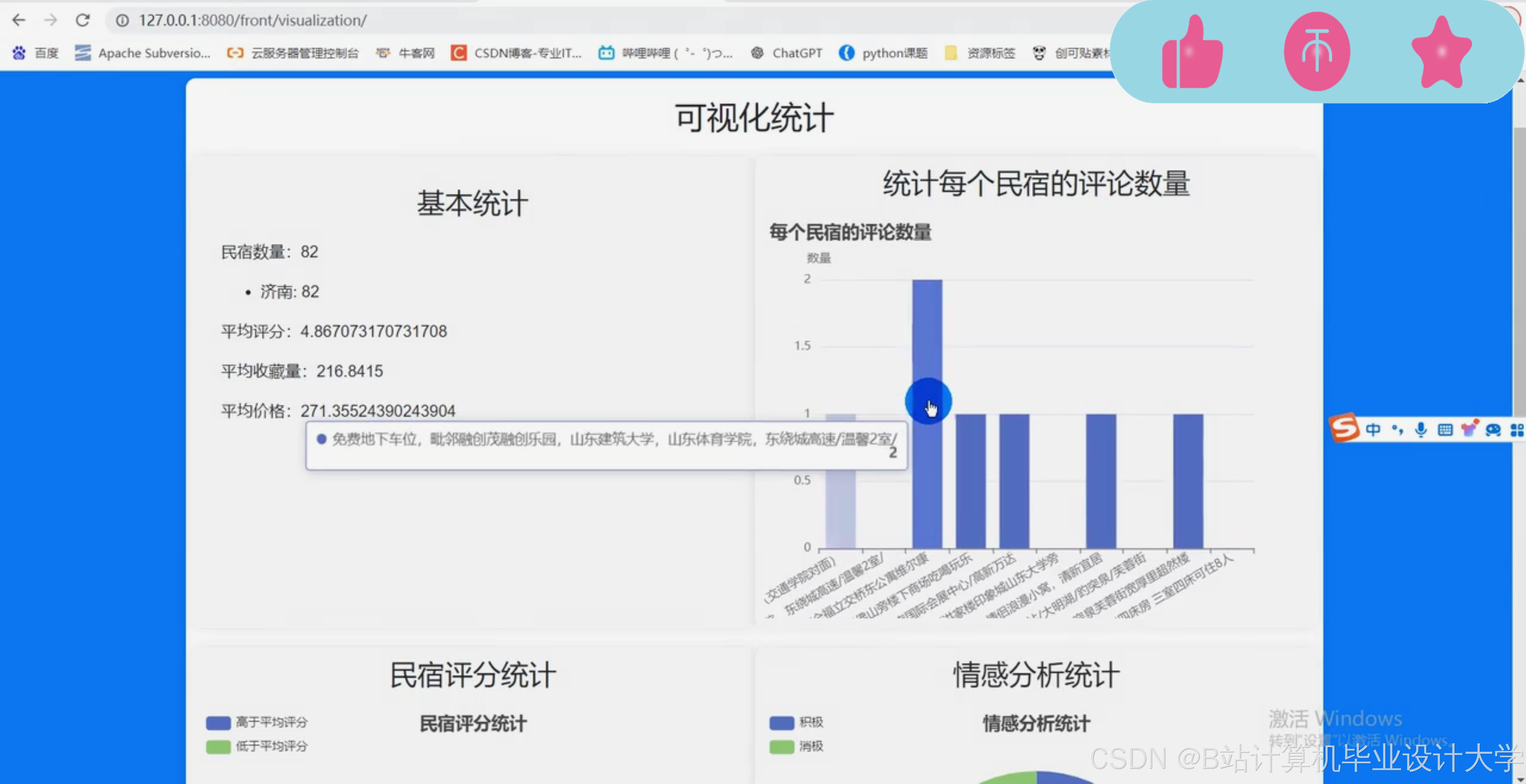 - 内容推荐:通过TF-IDF提取民宿特征词(权重阈值设为0.3),结合用户历史行为生成个性化推荐;