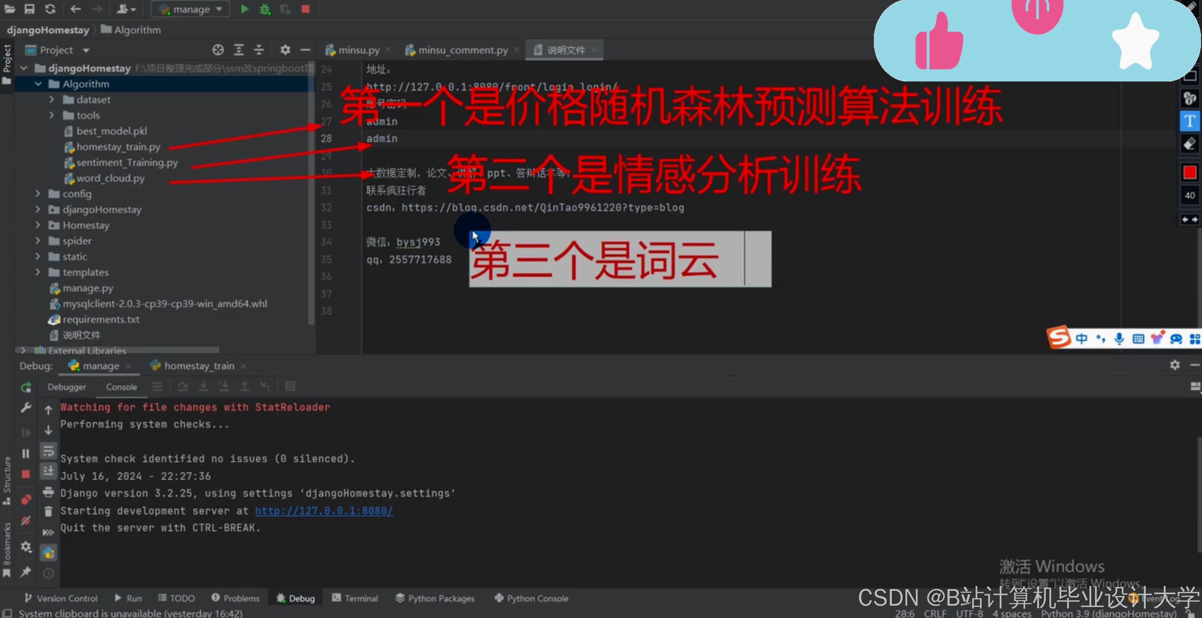 随着旅游业数字化转型加速,在线住宿预订市场规模持续扩大。2023年中国在线住宿交易规模达1.2万亿元,其中民宿占比超35%。传统推荐系统因交互体验滞后、推荐同质化、冷启动困境等问题难以满足用户需求,而基于Django(后端框架)与Vue.js(前端框架)的混合开发模式,通过技术融合与算法创新,为酒店与民宿推荐系统提供了高效、可扩展的解决方案。本文系统梳理该领域的技术架构、核心算法及实践案例,揭示其在个性化推荐、实时响应与跨平台整合方面的突破。