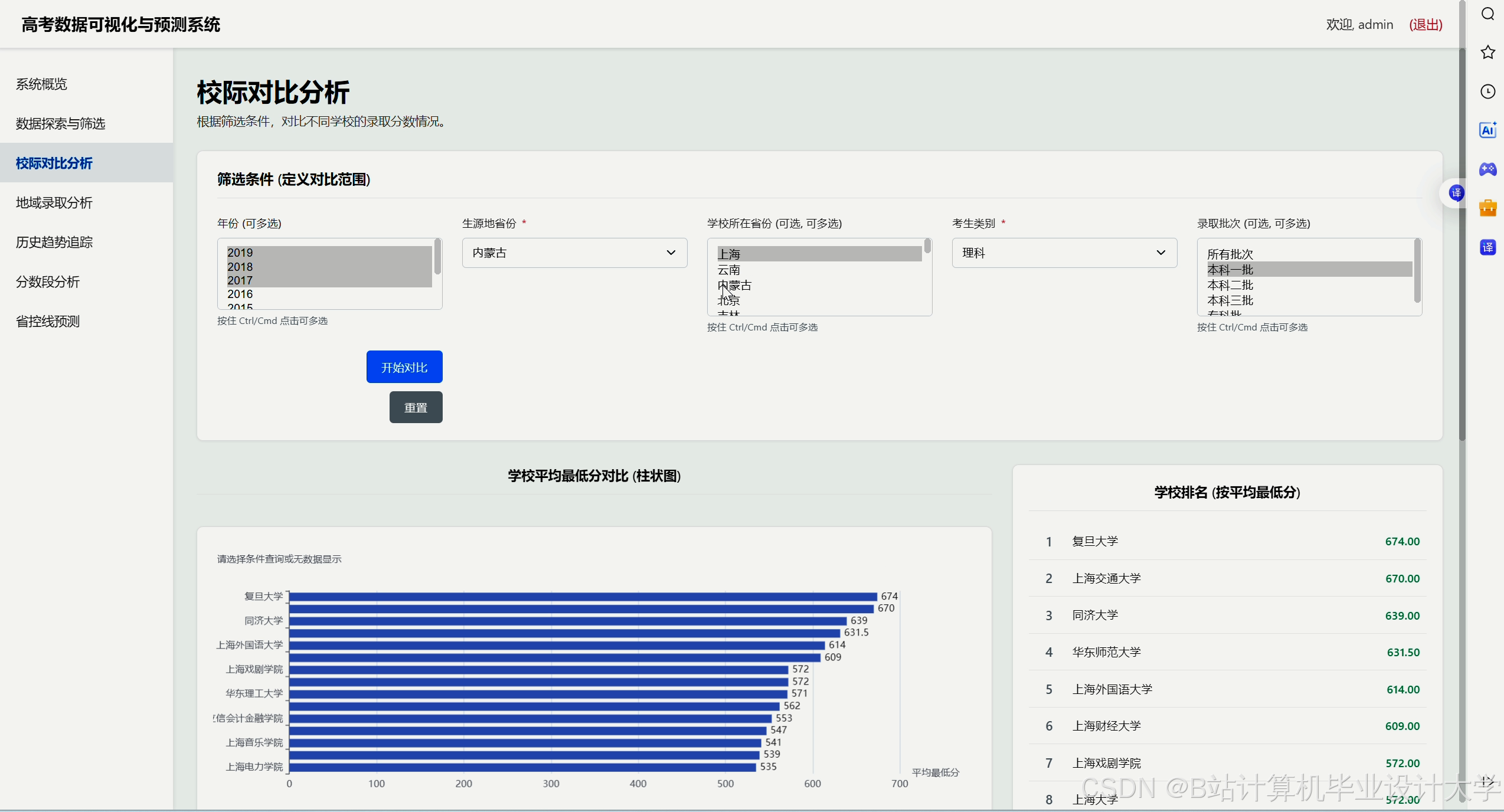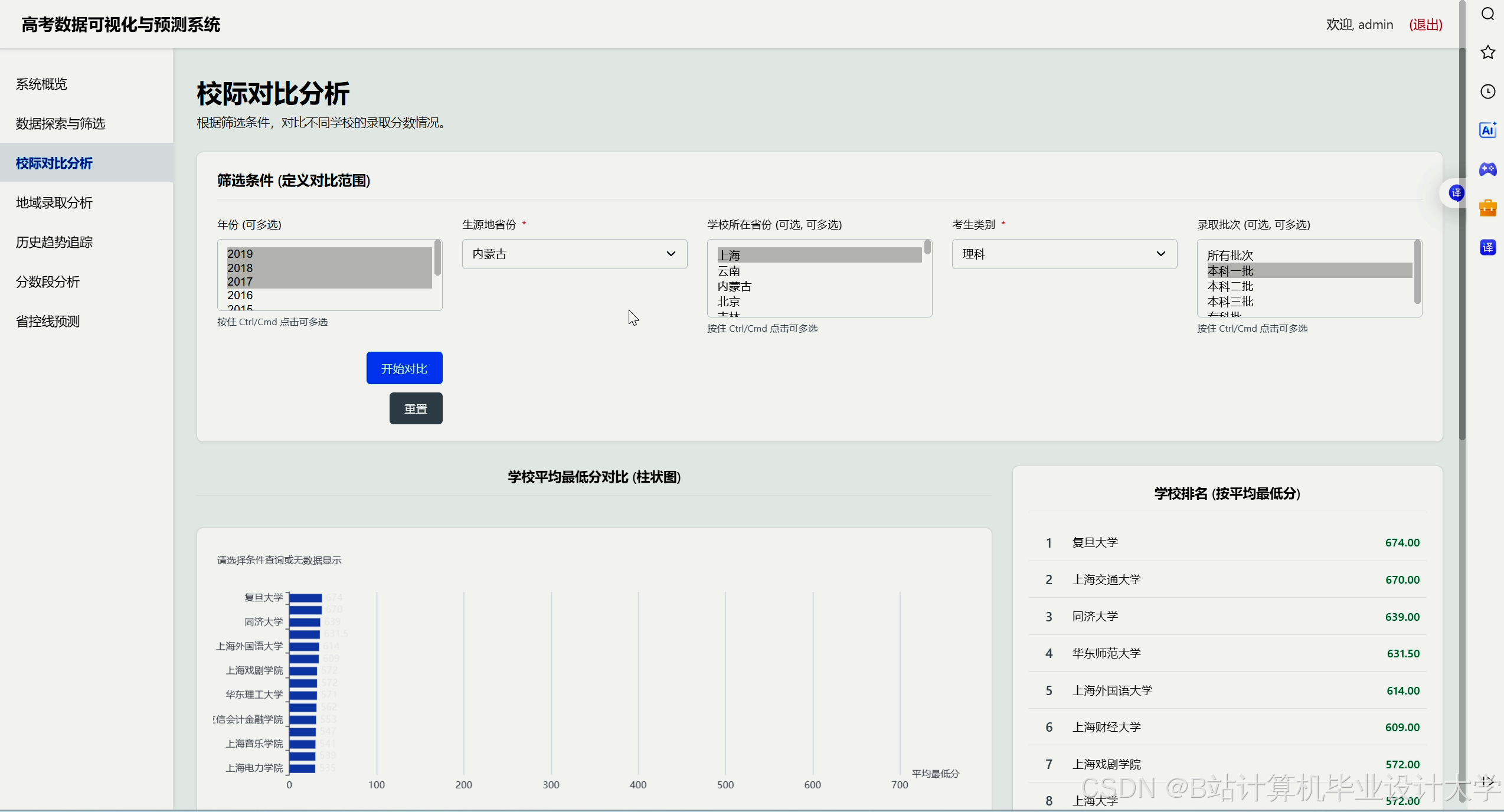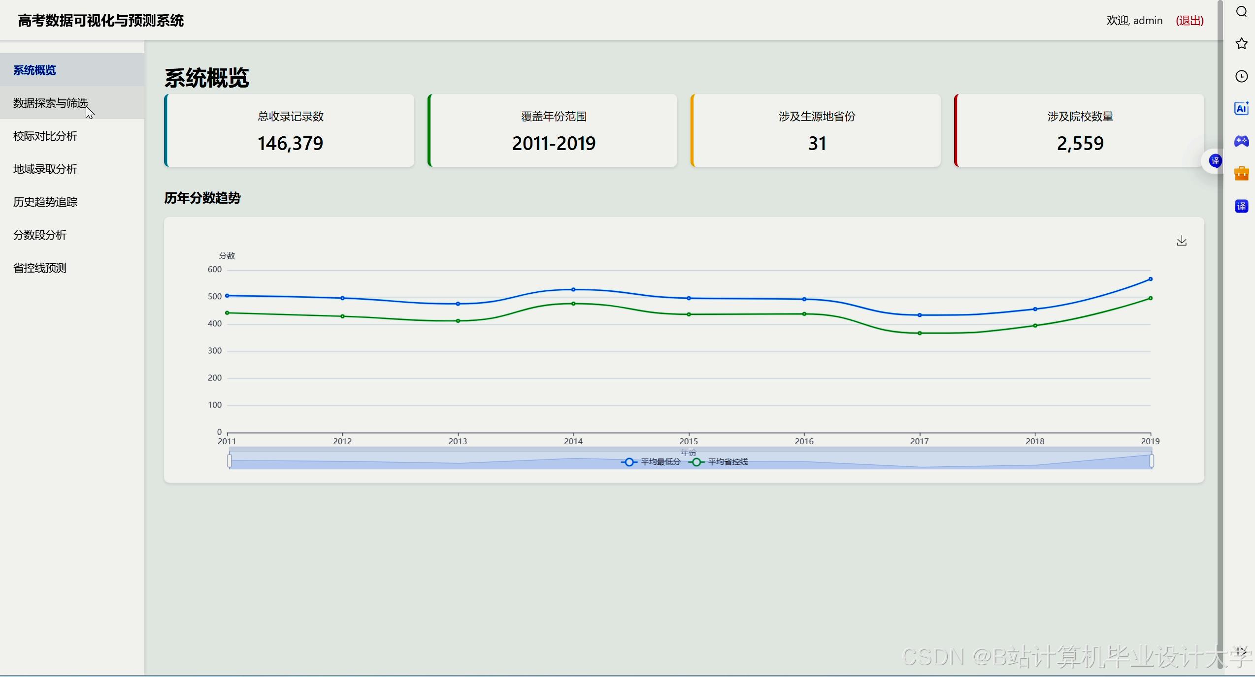 - 实现数据可视化(如分数线趋势图、院校对比雷达图)。
