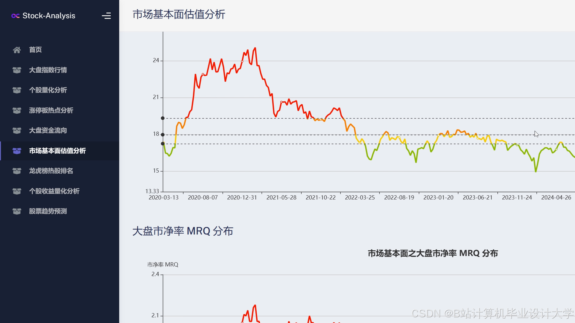 - 多图表看板:K线图(ECharts)、情感趋势折线图、预测结果柱状图。