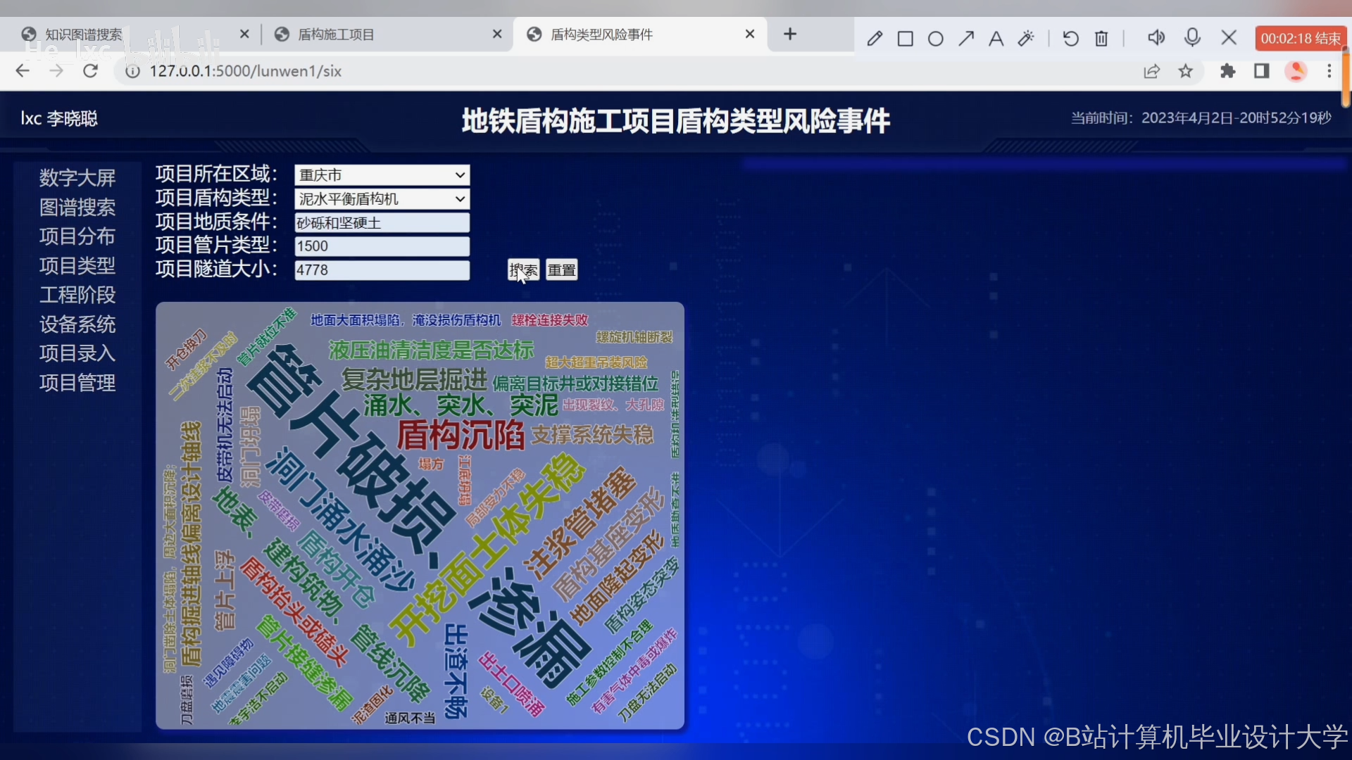 采用Echarts的力导向图布局算法,根据节点关联强度自动调整位置,避免图谱过于密集。例如,在展示“注浆不足”相关风险时,系统自动将“地层沉降”“管片错台”等强关联节点聚集显示。