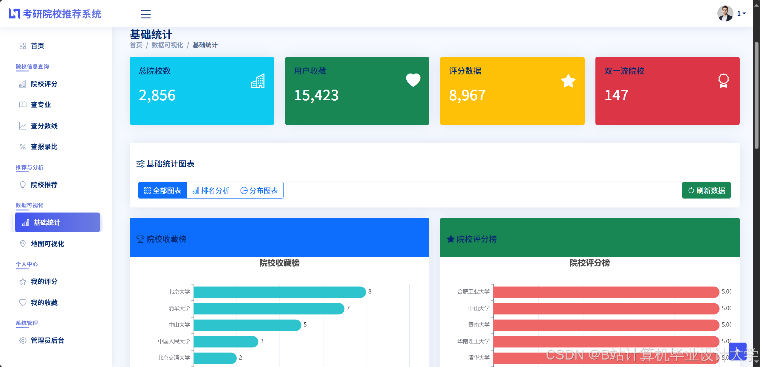 - 可视化展示:通过地图热力图、雷达图对比院校综合实力。