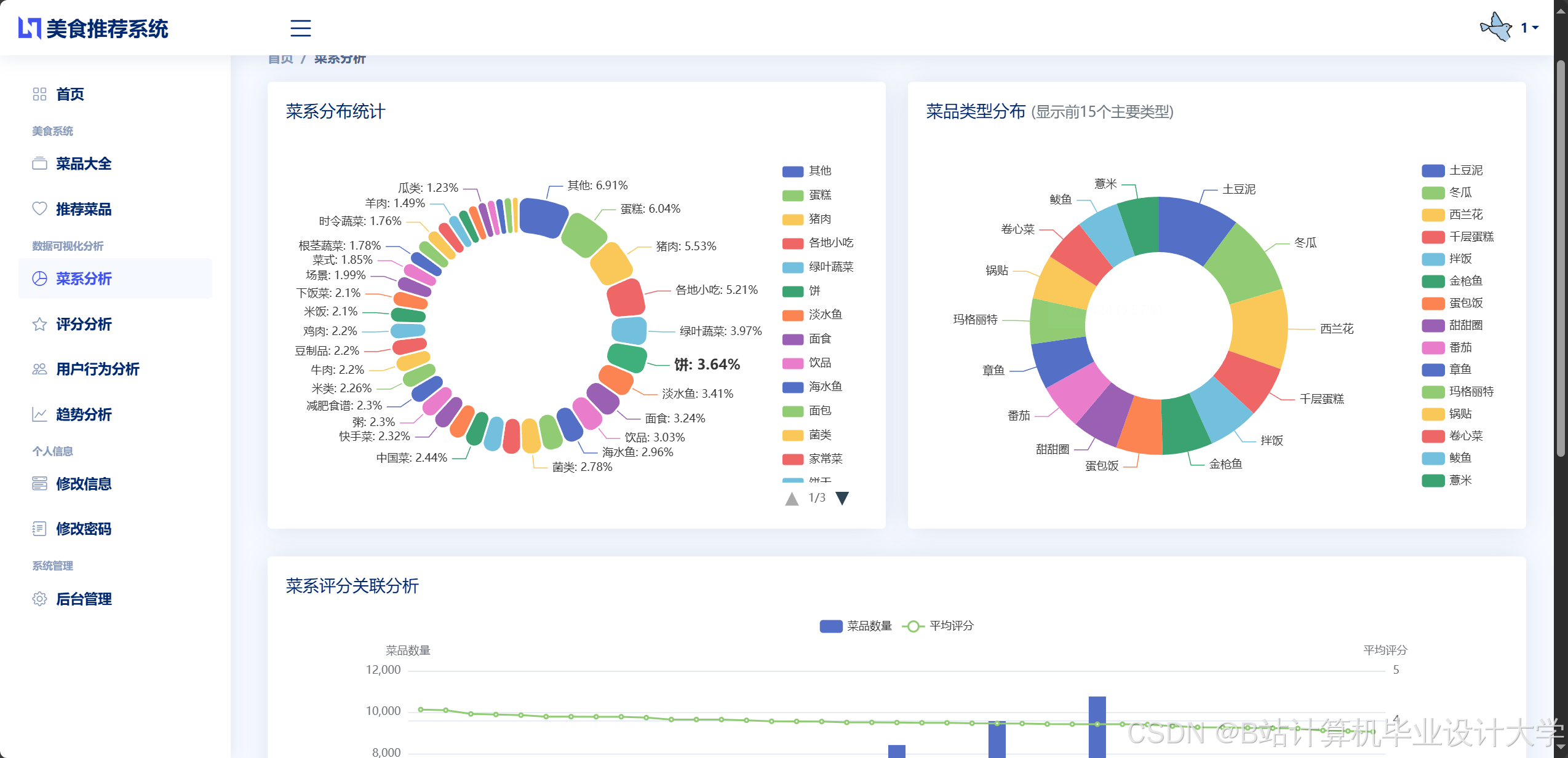 - 美食分类管理:对美食进行分类,如按菜系(川菜、粤菜等)、按食材(肉类、蔬菜类等)进行分类,方便用户根据分类浏览美食。