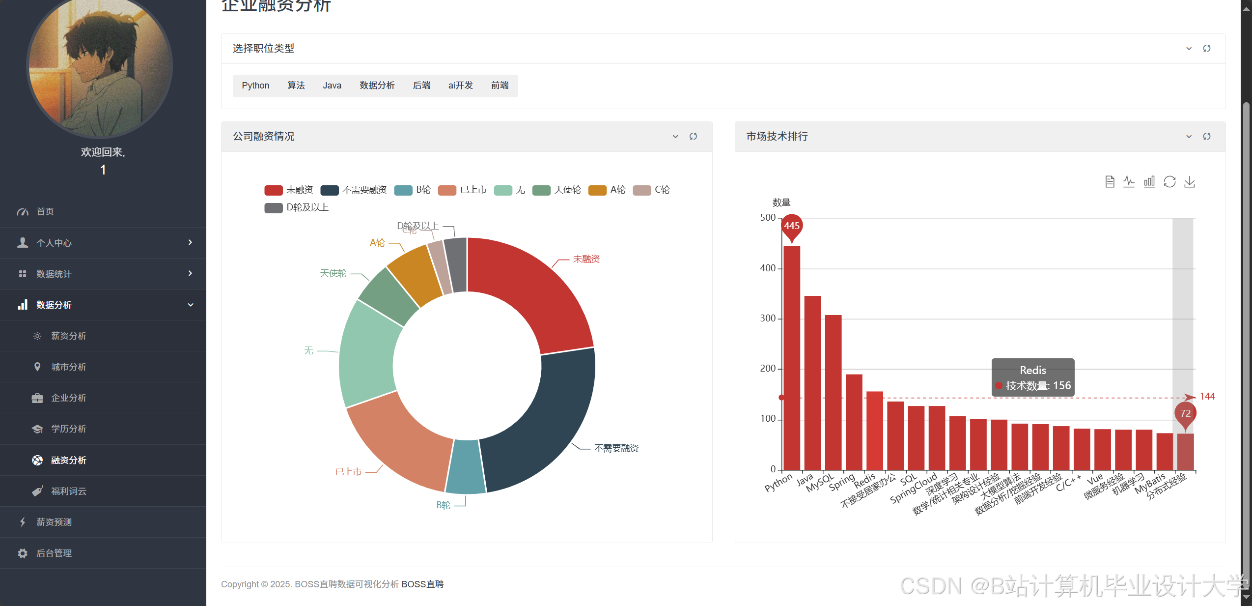 - 职位需求趋势图:分析热门技能(如“AI”“大数据”)的月度变化。