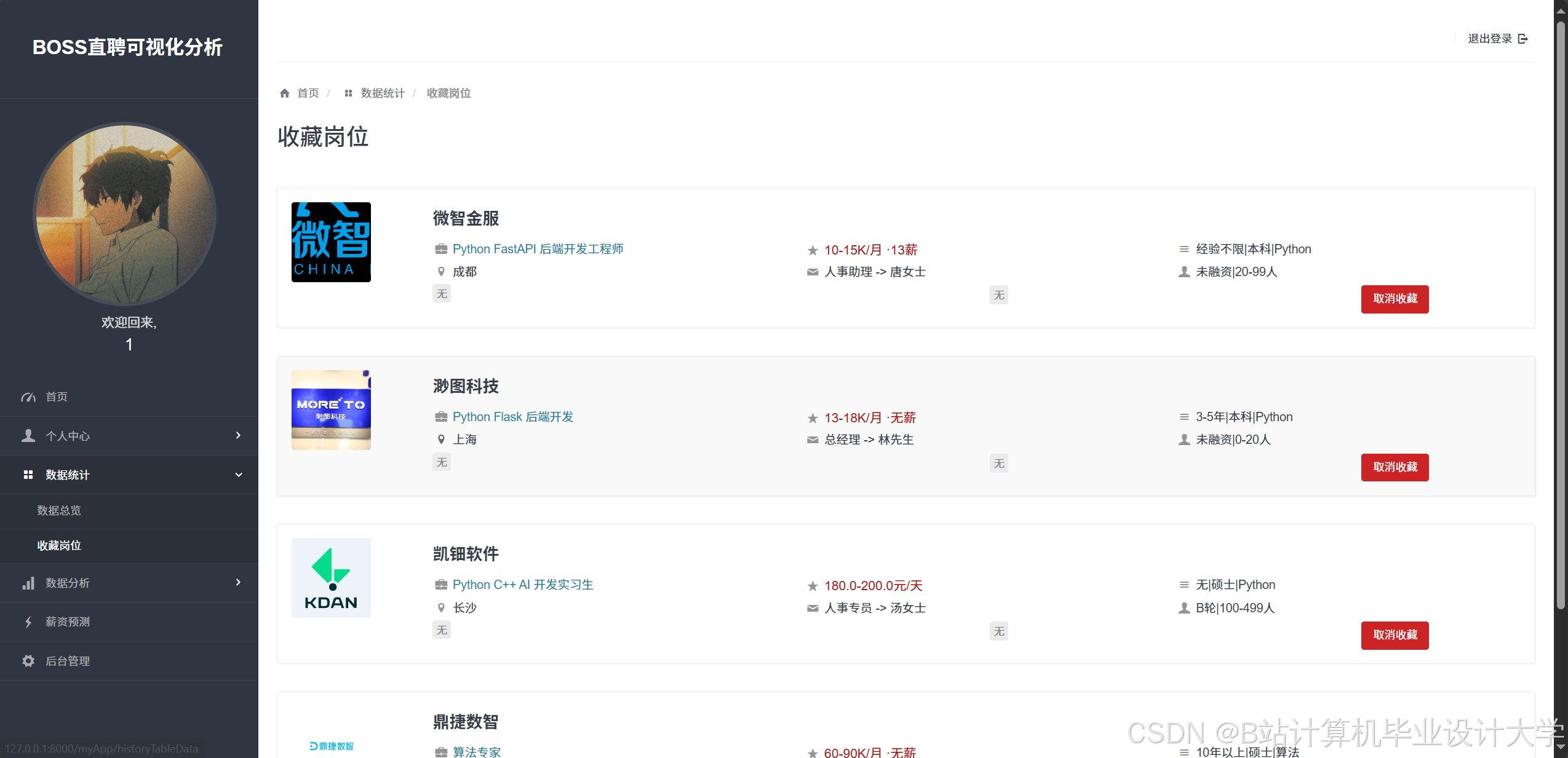 [3] cy1998hh. django招聘网站数据可视化系统的设计与实现[EB/OL]. 优快云博客, 2025-10-11.