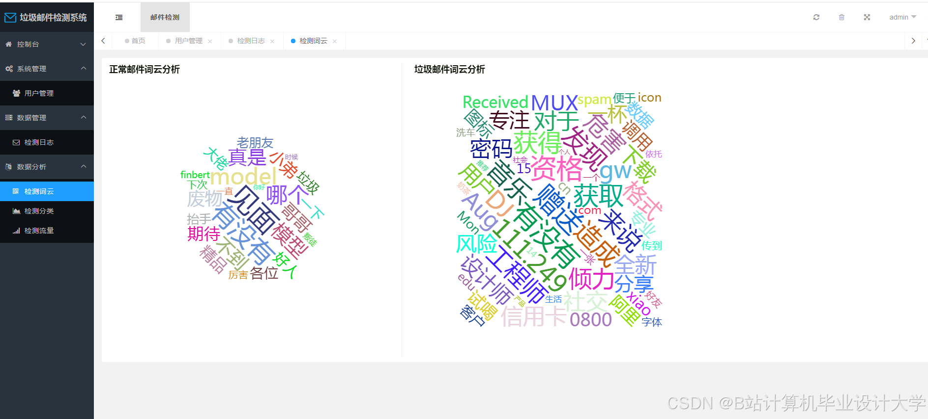 - 展示层:Echarts与Vue.js构建交互式界面,动态展示分类结果与性能指标(如准确率、召回率)。
