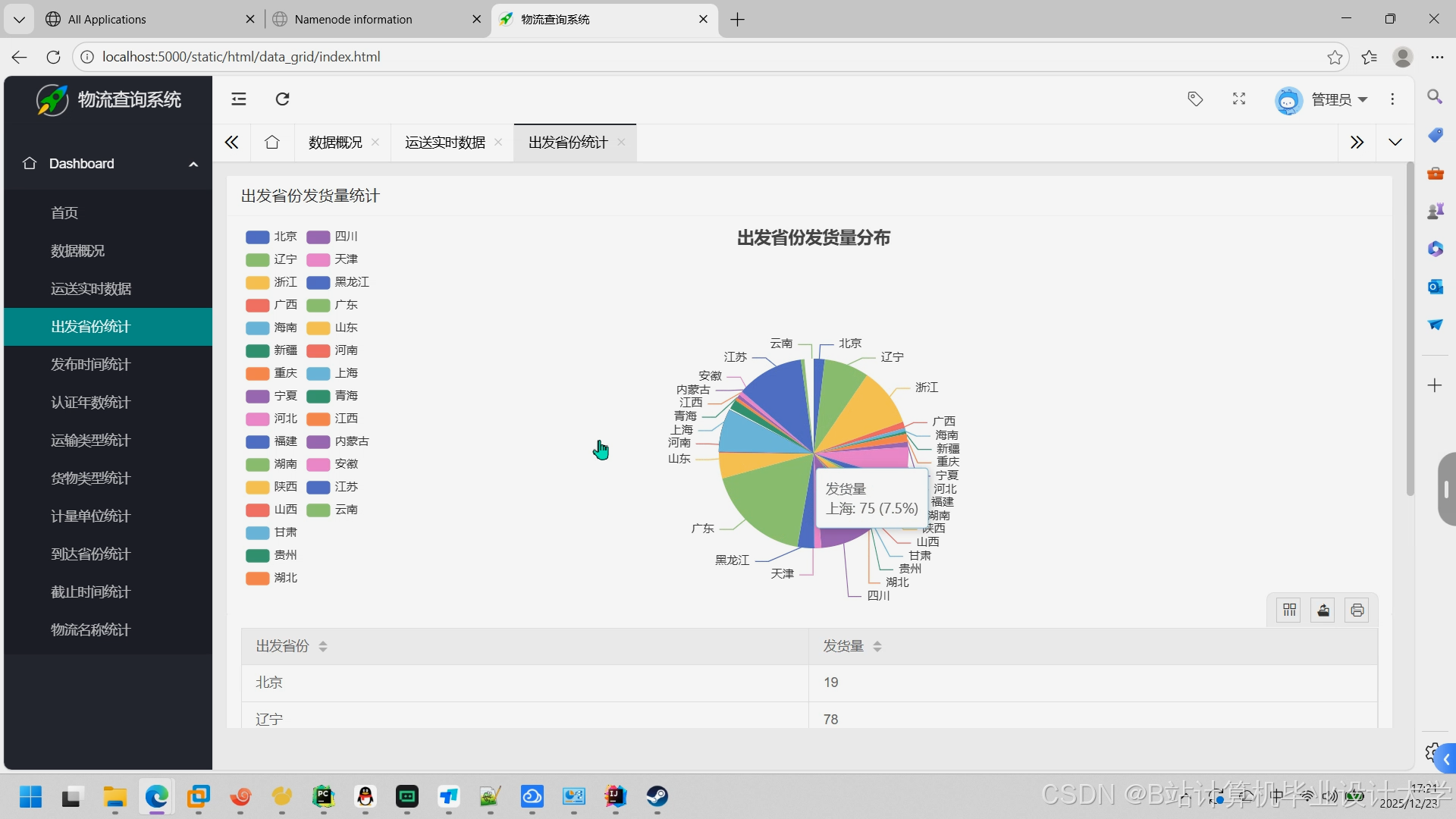 任务书:基于Hadoop+Spark+Hive的物流预测系统与物流大数据分析平台开发