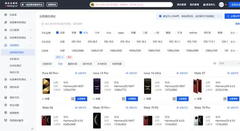 泽众云真机通过网页操作接入云端的真实手机,覆盖市场海量机型,远程操控快速流畅,用户随时随地进行测试,调试应用,快速定位问题,被测应用轻松获得FPS、CPU、Memory、CTemp、Network、FrameTime等性能参数和媒体声音。