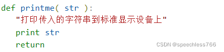- 函数代码块以 def 关键词开头,后接函数标识符名称和圆括号()。