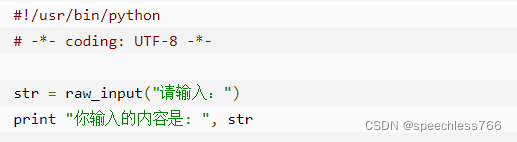 raw_input([prompt]) 函数从标准输入读取一个行,并返回一个字符串(去掉结尾的换行符):