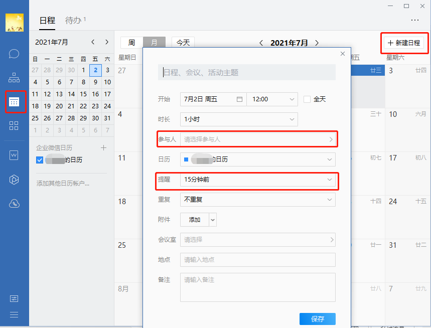 除了微文档外,企业微信还提供了日程管理功能,如果需要与同事共同协作完成事项,则可以添加同事为参与人。并且到了设置时间时,桌面会出现弹窗提示,避免错过时间,设计非常人性化。