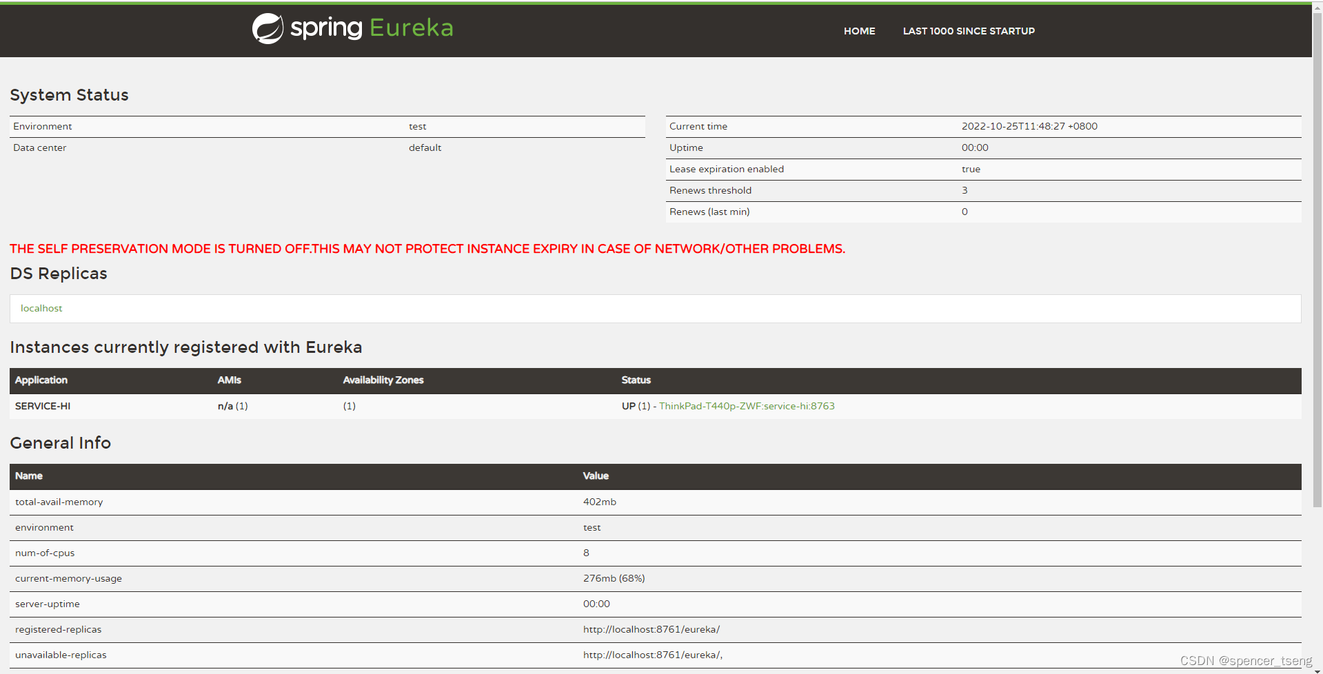 THE SELF PRESERVATION MODE IS TURNED OFF.THIS MAY NOT PROTECT INSTANCE EXPIRY IN CASE OF NETWORK/OTH
