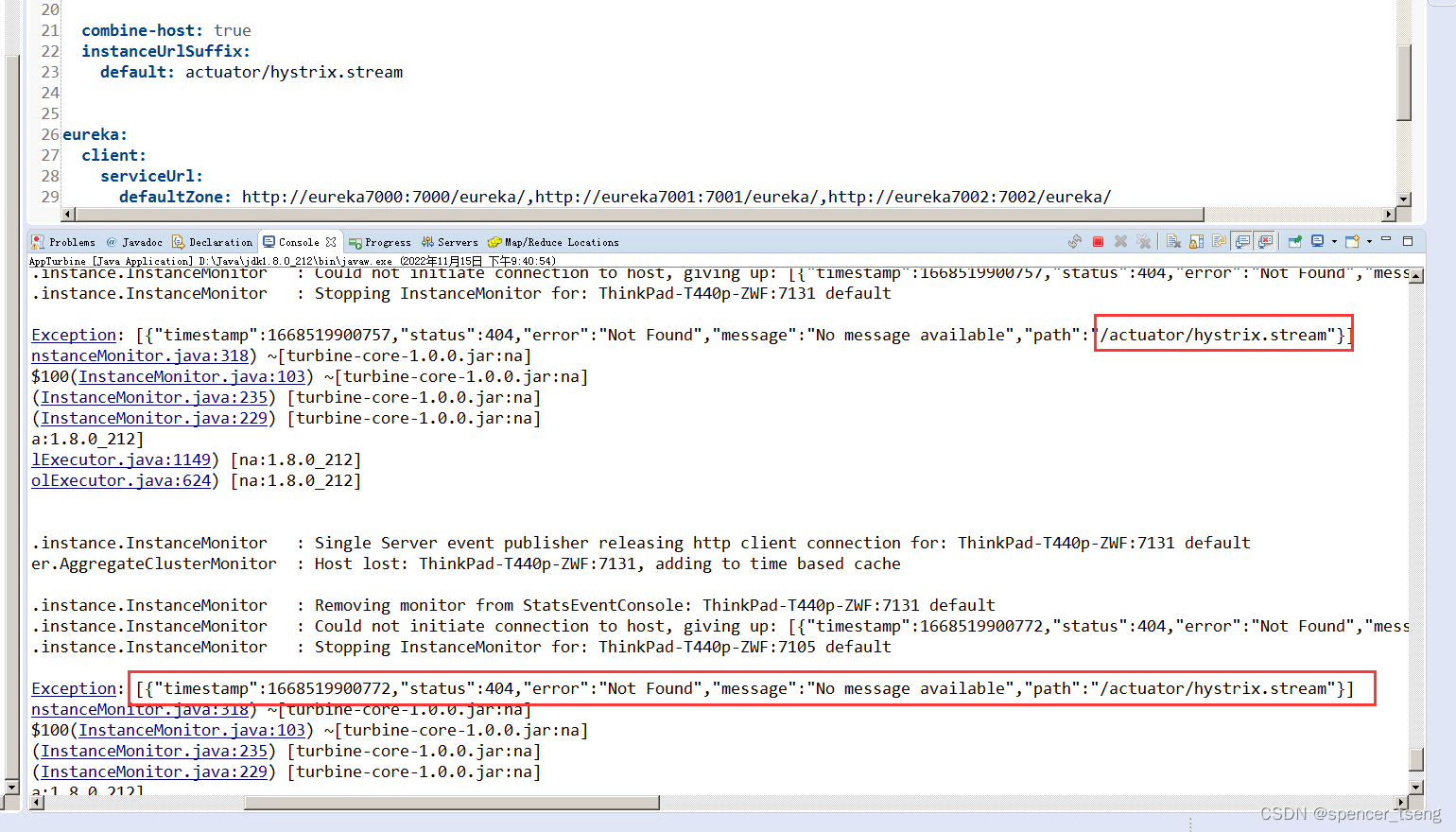 2022-11-15 21:46:00.733 INFO 9404 --- [ Timer-0] c.n.t.monitor.instance.InstanceMonitor : Url for host: http://ThinkPad-T440p-ZWF:7104/actuator/hystrix.stream default