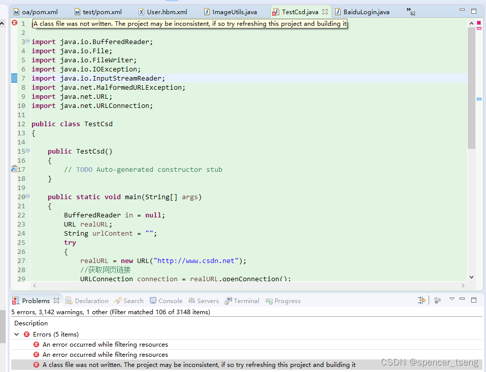 A class file was not written. The project may be inconsistent, if so try refreshing this project and building it /PrjFlexJava/java_src/web_crawler TestCsd.java Unknown Java Problem