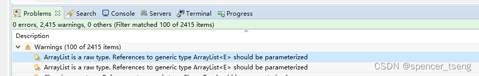 - ArrayList is a raw type. References to generic type ArrayList<E> should be parameterized