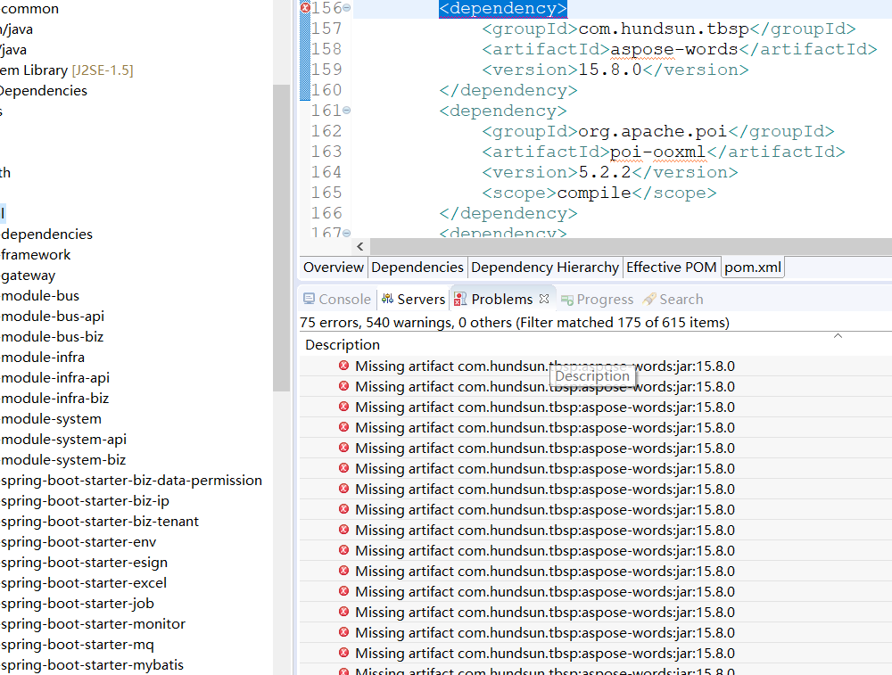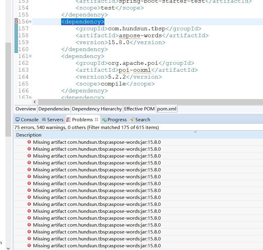Missing artifact com.hundsun.tbsp:aspose-words:jar:15.8.0 pom.xml /park-common line 156 Maven Dependency Problem