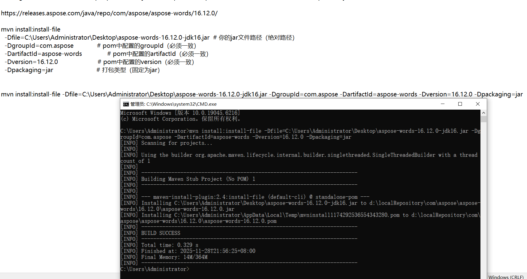 mvn install:install-file -Dfile=C:\Users\Administrator\Desktop\aspose-words-16.12.0-jdk16.jar -DgroupId=com.aspose -DartifactId=aspose-words -Dversion=16.12.0 -Dpackaging=jar