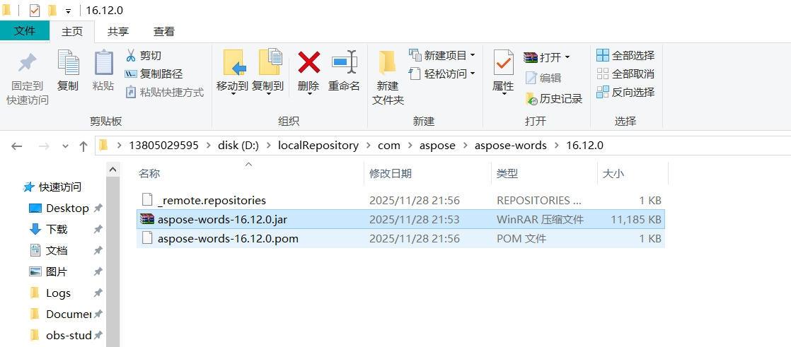 [INFO] Installing C:\Users\Administrator\Desktop\aspose-words-16.12.0-jdk16.jar to d:\localRepository\com\aspose\aspose-words\16.12.0\aspose-words-16.12.0.jar