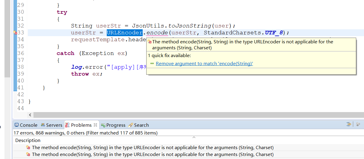 The method encode(String, String) in the type URLEncoder is not applicable for the arguments