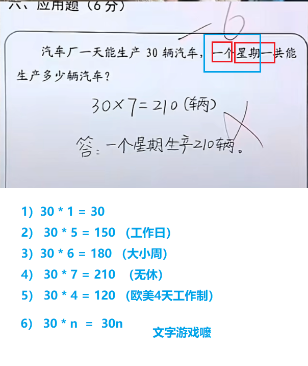 8 x 3 ??? 3 x 8 一天工厂产能上限是30辆嚒?会不会出现质量问题,有一天没产出30辆 该工厂人力考勤是一天8小时嚒?还是一天7.5小时呢?这个问题还挺复杂的,那么一周到底工时是多少呢。 小学作业快乐无边