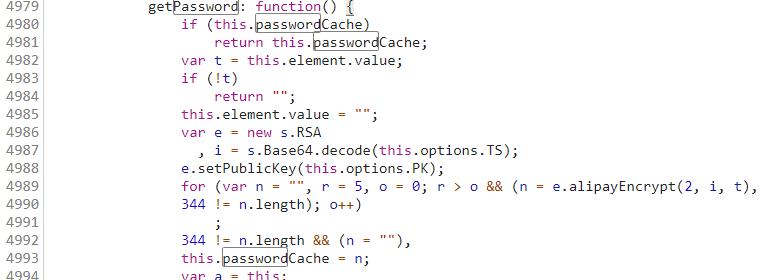 根据上面的搜索关键词 password= ,我在 index.js 文件种定位到了加密位置 getPassword,熟悉的 RSA 加密