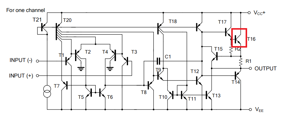 传统运放(如LM358、LM741、TL0xx系列)使用BJT(双极性晶体管) 作为输出级。为了不产生交越失真,输出级通常工作在AB类(甲乙类)。