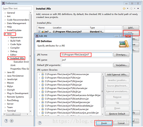 选择WindowàPrefrencesàjavaàInstalled JREsàEdità选择自己本地jdk安装路径àFinishedàOK