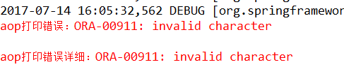 package com.tp.soft.aop; import java.io.IOException; import java.sql.SQLException; import org.aspectj.lang.JoinPoint; import org.aspectj.lang.ProceedingJoinPoint; import org.slf4j.Logger; import org.slf4j.LoggerFactory; import org.springframework.dao.DataAccessException; import com.tp.soft.common.exception.BaseServiceException; public class LoggerAop { private Logger LOG = LoggerFactory.getLogger(Logger.class); //前置通知 public void doBefore(JoinPoint jp){ System.out.println(jp.getTarget().getClass().getName()); } public Object doAround(ProceedingJoinPoint pjp) throws Throwable{ System.out.println("环绕开始"); Object proceed = pjp.proceed(); System.out.println("环绕结束"); return proceed; } public void doAfterReturning(JoinPoint jp){ System.out.println("返回通知"); } public void doAfterThrowing(JoinPoint jp, Throwable e){ String errStr = ""; String err_detail = ""; if (e.getClass().equals(DataAccessException.class)) { errStr = "数据库操作失败!"; } else if (e.getClass().toString() .equals(NullPointerException.class.toString())) { errStr = "调用了未经初始化的对象或者是不存在的对象!"; } else if (e.getClass().equals(IOException.class)) { errStr = "IO异常!"; } else if (e.getClass().equals(ClassNotFoundException.class)) { errStr = "指定的类不存在!"; } else if (e.getClass().equals(ArithmeticException.class)) { errStr = "数学运算异常!"; err_detail = errStr; } else if (e.getClass().equals(ArrayIndexOutOfBoundsException.class)) { errStr = "数组下标越界!"; err_detail = errStr; } else if (e.getClass().equals(IllegalArgumentException.class)) { errStr = "方法的参数错误!"; err_detail = errStr; } else if (e.getClass().equals(ClassCastException.class)) { errStr = "类型强制转换错误!"; err_detail = errStr; } else if (e.getClass().equals(SecurityException.class)) { errStr = "违背安全原则异常!"; err_detail = errStr; } else if (e.getClass().equals(SQLException.class)) { errStr = "操作数据库异常!"; err_detail = errStr; } else if (e.getClass().equals(NoSuchMethodError.class)) { errStr = "方法末找到异常!"; err_detail = errStr; } else if (e.getClass().equals(InternalError.class)) { errStr = "Java虚拟机发生了内部错误"; err_detail = errStr; } else if (e.getClass().equals(BaseServiceException.class)){ errStr = e.getMessage(); err_detail = e.getMessage(); } else { errStr = e.getCause().getMessage(); err_detail = e.getCause().getLocalizedMessage(); } System.err.println("aop打印错误:"+errStr); System.err.println("aop打印错误详细:"+err_detail); //可以操作数据库记录 } }