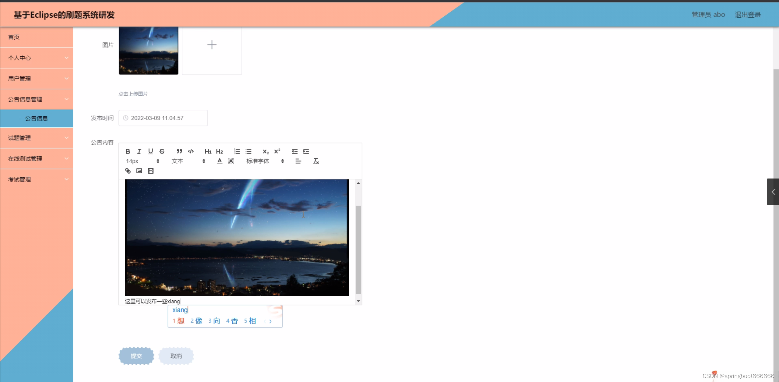 随着计算机技术的不断发展,编程已经成为了当今社会的一种必备技能。为了提高人们的编程能力,各种编程竞赛和在线刷题平台应运而生。其中,基于Eclipse的刷题系统是一种非常受欢迎的在线学习工具,它可以帮助用户在编程过程中快速定位问题、提高编程效率。然而,现有的基于Eclipse的刷题系统功能相对单一,无法满足不同用户的需求。因此,研发一款具有高度可定制性和扩展性的基于Eclipse的刷题系统具有重要的现实意义。