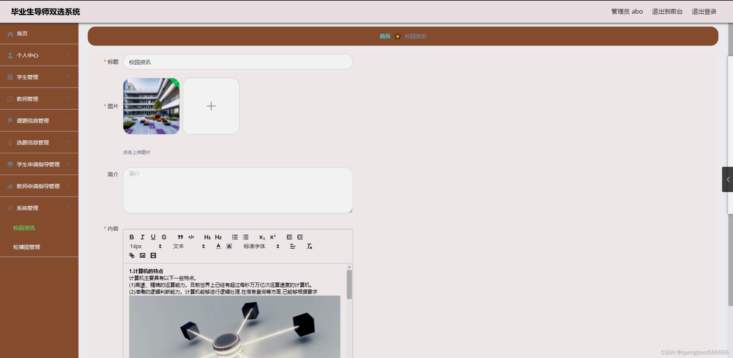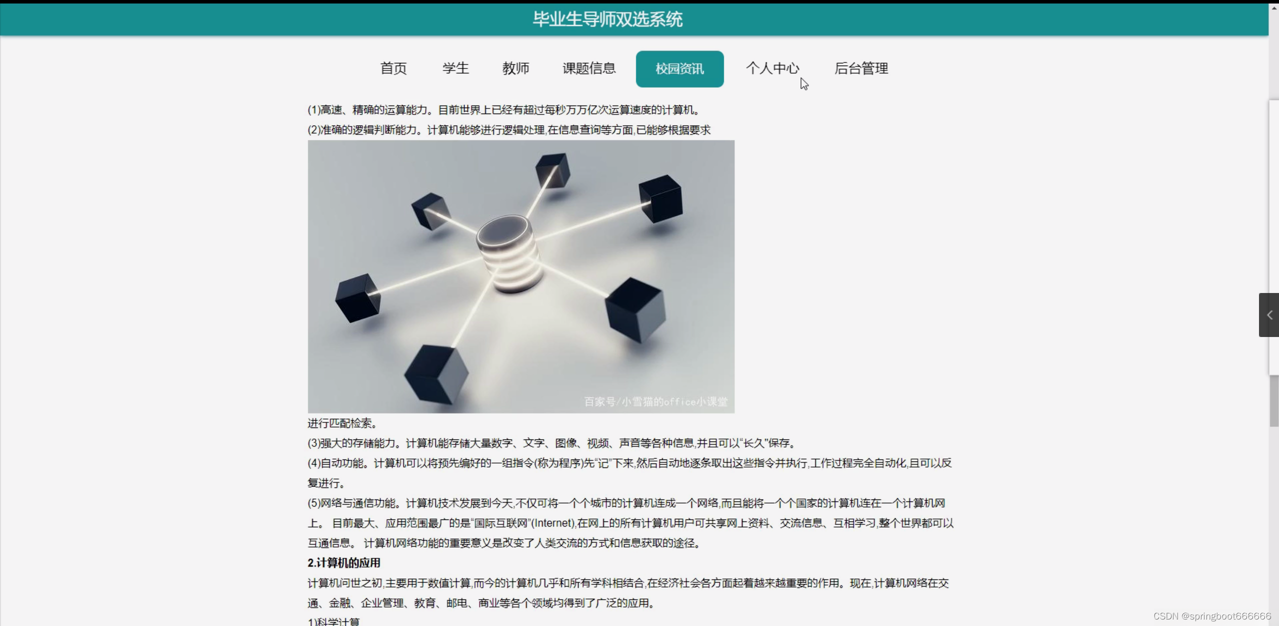随着科技的飞速发展,教育行业也在不断地进行改革和创新。在这个过程中,毕业生导师双选系统应运而生,成为了高校教育改革的重要组成部分。毕业生导师双选系统是一种通过网络平台,让毕业生和导师在毕业前进行双向选择的机制。这种机制旨在为学生提供更加个性化、专业化的指导,同时也为导师提供了一个更加高效、便捷的选拔过程。然而,目前国内外关于毕业生导师双选系统的研究和实践还相对较少,尚未形成完善的理论体系和实践经验。因此,对毕业生导师双选系统的研究具有重要的现实意义。