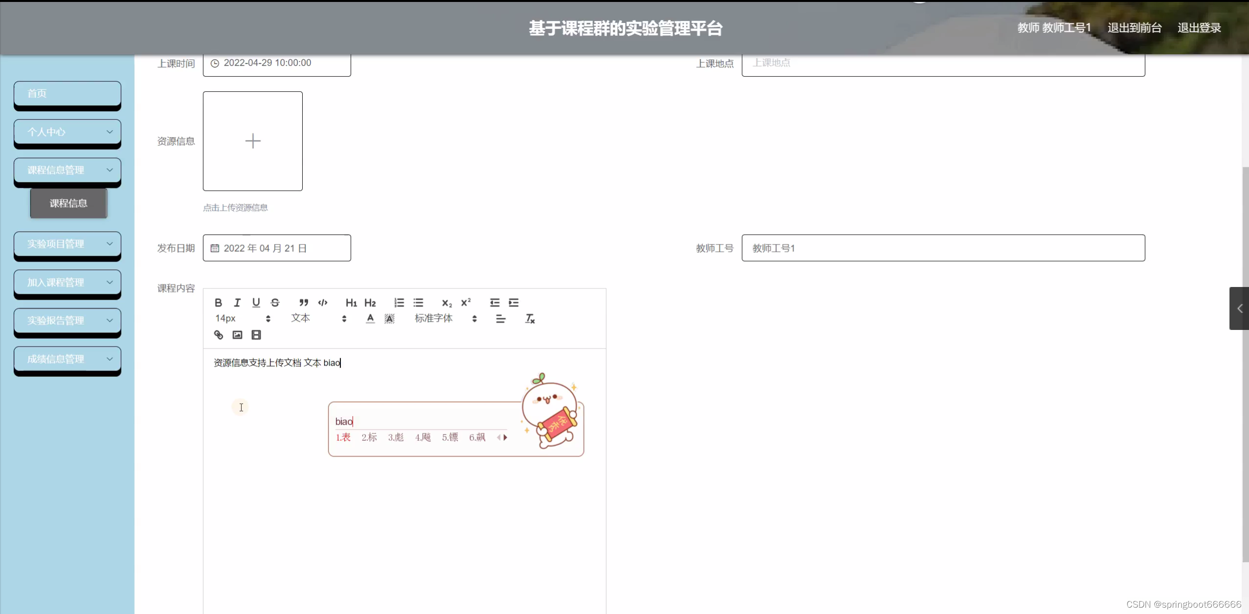 总的来说,开发一款基于课程群的实验管理平台,不仅可以满足现代教育的需求,提高实验教学的效率和质量,也可以提高教师和学生的使用体验,具有重要的实践意义。