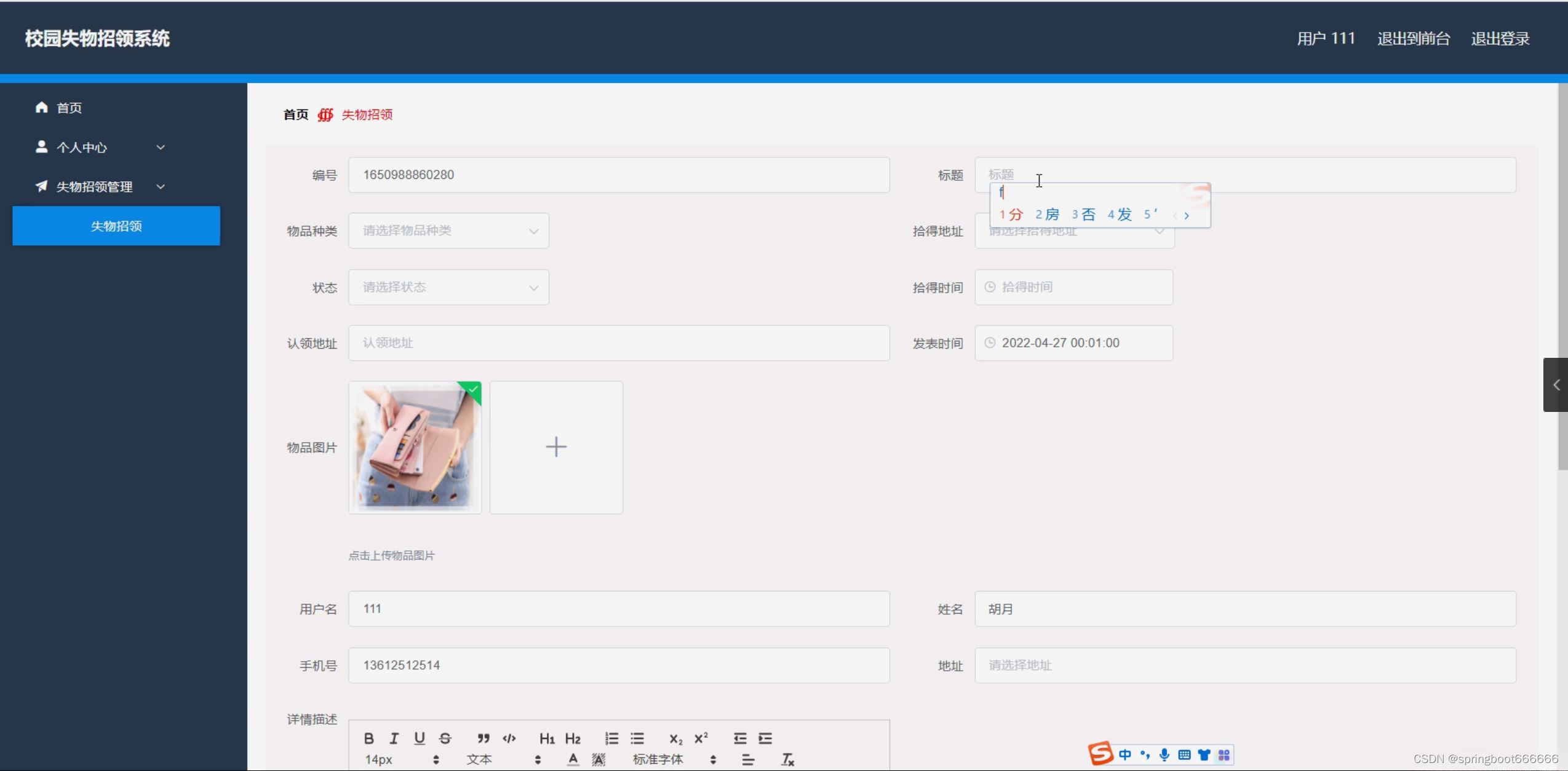 在现代社会中,校园是学生们学习、生活的重要场所。然而,由于学生的疏忽或者管理不善,校园内的物品丢失现象时有发生。这些失物不仅给失主带来了经济损失,也影响了他们的学习和生活。同时,一些捡到失物的学生由于没有合适的渠道归还,也无法将失物归还给失主。因此,建立一个有效的校园失物招领系统显得尤为重要。