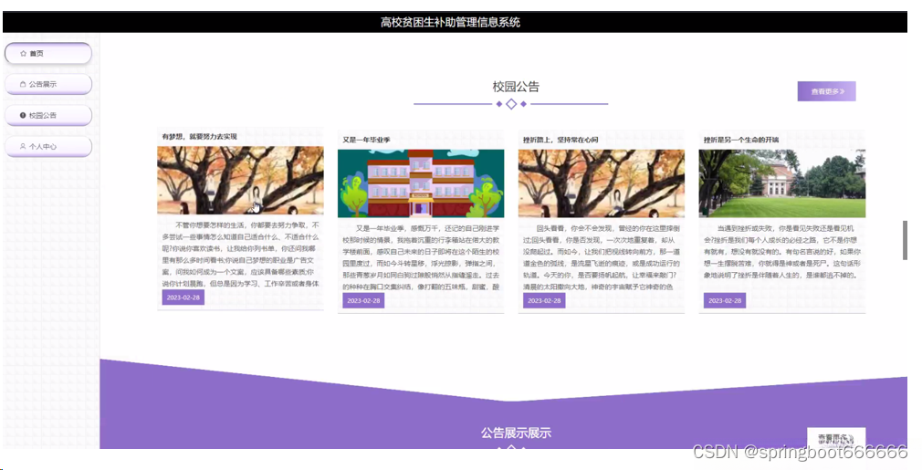 | 【75】 | springboot中山学院大学生志愿者公益网站 |