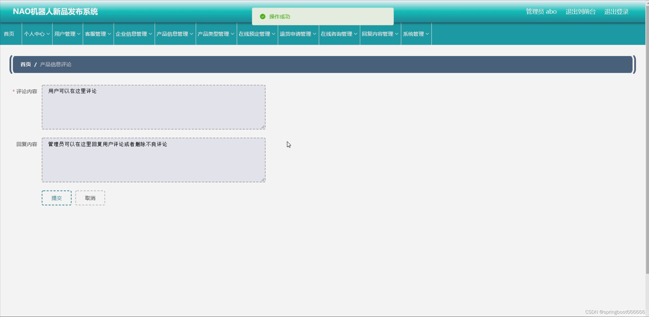 NAO机器人新品发布系统的研究和开发具有重要的现实意义和深远的历史意义。首先,该系统的推出将有助于推动服务型机器人产业的发展,提高整个行业的技术水平和市场竞争力。通过对NAO机器人新品的研发和推广,可以为其他企业和研究机构提供借鉴和参考,促进整个行业的技术进步。其次,该系统的成功应用将为人们的生活带来更多便利,提高生活质量。NAO机器人新品可以广泛应用于医疗、教育、家庭等领域,为人们提供更加智能化、个性化的服务。最后,该系统的研究和开发将有助于培养一批具有创新精神和实践能力的高素质人才,为国家的科技创新和产业发展做出贡献。总之,NAO机器人新品发布系统的研究具有重要的现实意义和历史意义,值得我们投入更多的精力和资源进行研究和开发。