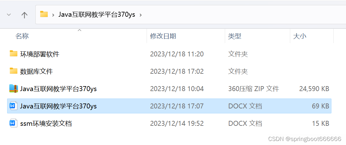 • 在这种开发技术模式下,系统的开发流程主要是前端专注于使用Vue.js构建动态和响应式的用户界面,同时通过Ajax技术与后端进行数据交换,实现了前后端的逻辑分离。后端SSM框架结合了Spring的依赖注入和事务管理、SpringMVC的模型-视图-控制器架构以及MyBatis的数据持久化功能,为后端开发提供全面的支持。在部署阶段,前端编译生成的静态文件(HTML, CSS, JavaScript等)和后端编译的Java代码一同部署在Tomcat服务器上,从而使得整个Web应用能够在服务器上运行并被用户访问。