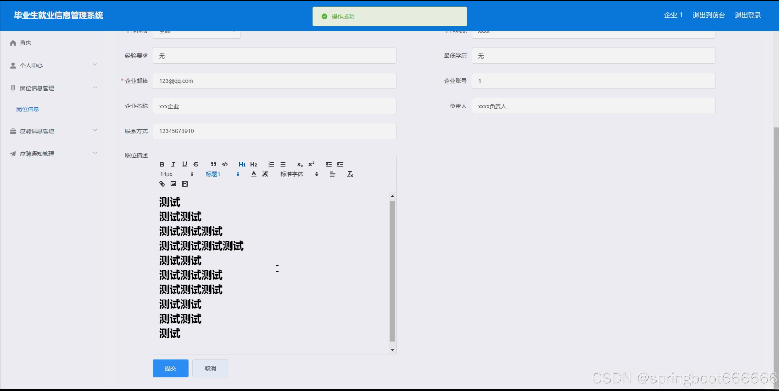 毕业生就业信息管理系统的开发与应用对于高校、毕业生以及社会的发展具有重要的意义。首先,对于高校而言,通过建立完善的毕业生就业信息管理系统,可以更加高效地收集、整理和分析毕业生的就业信息,为高校提供有针对性的就业指导和服务,提高毕业生的就业质量和满意度。其次,对于毕业生而言,毕业生就业信息管理系统可以帮助他们更好地了解就业市场的需求和动态,提高求职效率,增加就业机会。最后,对于社会而言,毕业生就业信息管理系统的应用有助于促进人才的合理流动和配置,推动社会经济的持续发展。