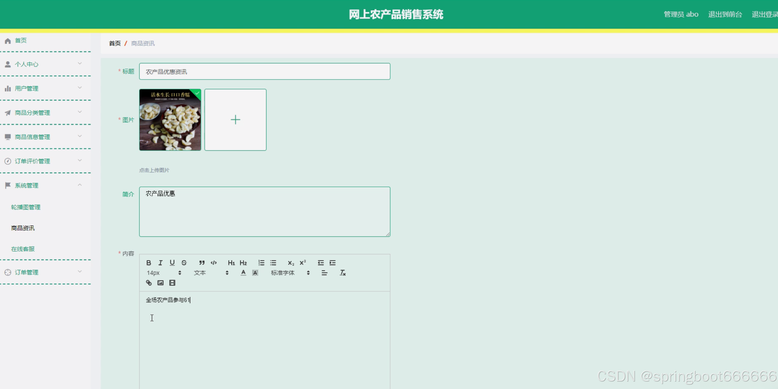 本选题旨在研究和设计一个网上农产品销售系统,通过对农产品生产、加工、储存、运输等环节的信息化管理,实现农产品从田间到餐桌的全程追溯,提高农产品的质量安全水平。同时,通过搭建一个便捷、高效的农产品交易平台,打破传统农产品销售模式中的地域限制,拓宽农产品销售渠道,降低交易成本,提高农民收入。此外,网上农产品销售系统还可以为政府部门提供实时、准确的农产品市场信息,有助于政府制定针对性的农业政策,促进农业产业结构的优化升级。总之,研究并实施网上农产品销售系统具有重要的理论意义和实践价值,对于推动我国农业现代化进程,提高农民生活水平具有积极的推动作用。