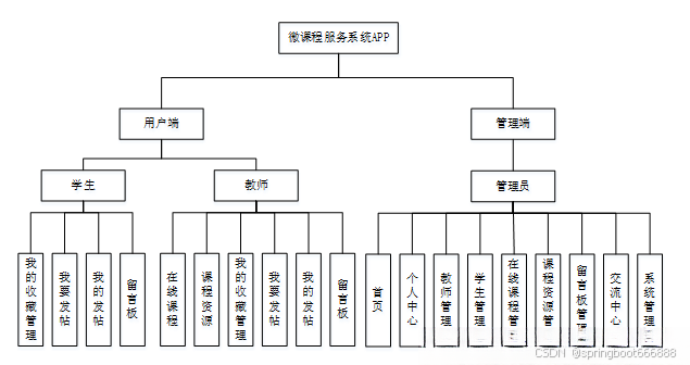 系统架构图属于系统设计阶段,系统架构图只是这个阶段一个产物,系统的总体架构决定了整个系统的模式,是系统的基础。微课程服务系统APP的整体结构设计如图4-2所示。