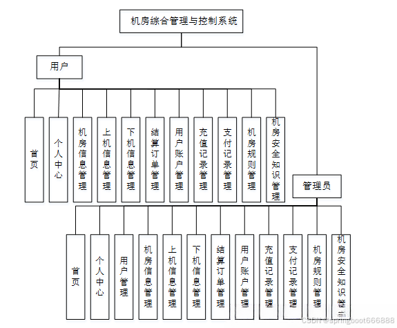为了更好的去理清本系统整体思路,对该系统以结构图的形式表达出来,设计实现该机房综合管理与控制系统的功能结构图如下所示: