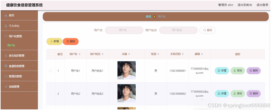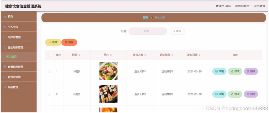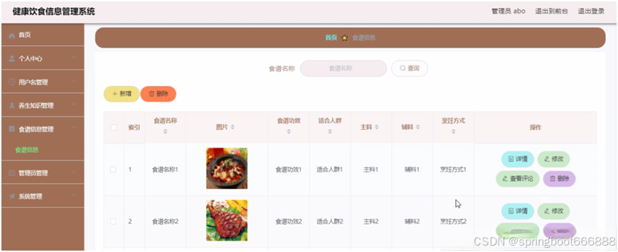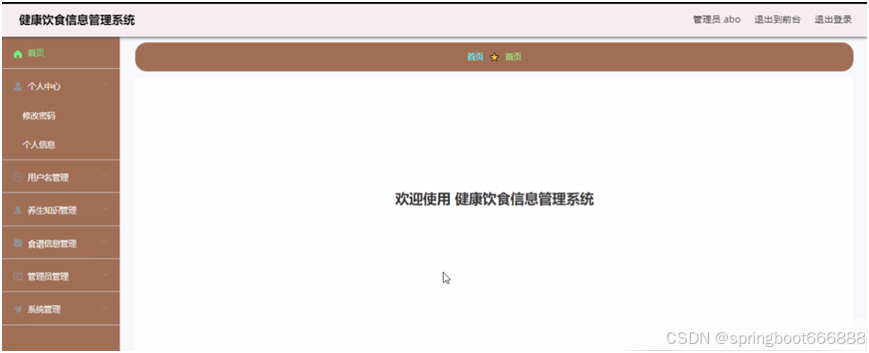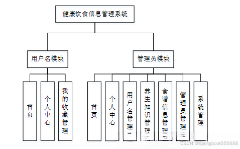 这些功能可以充分满足健康饮食信息管理系统的需求。此系统功能较为全面如下图系统功能结构如图4-3所示。