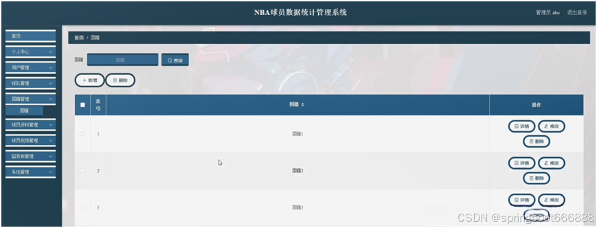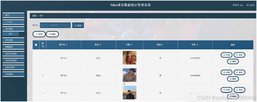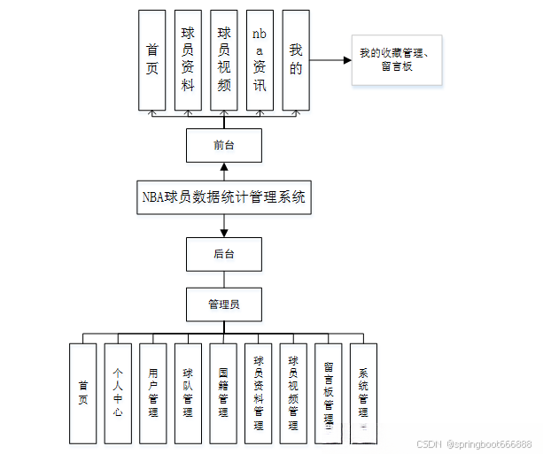 为了更好的去理清本系统整体思路,对该系统以结构图的形式表达出来,设计实现该NBA球员数据统计管理系统的功能结构图如下所示: