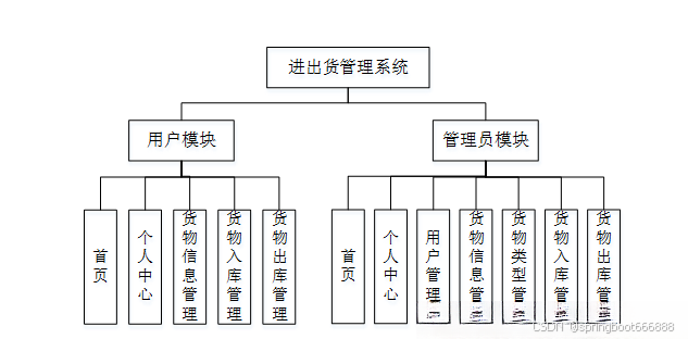 系统架构图属于系统设计阶段,系统架构图只是这个阶段一个产物,系统的总体架构决定了整个系统的模式,是系统的基础。进出货管理系统的整体结构设计如图4-2所示。