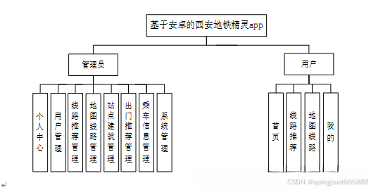 系统架构图属于系统设计阶段,系统架构图只是这个阶段一个产物,系统的总体架构决定了整个系统的模式,是系统的基础。基于安卓的西安地铁精灵app的整体结构设计如图4-2所示。