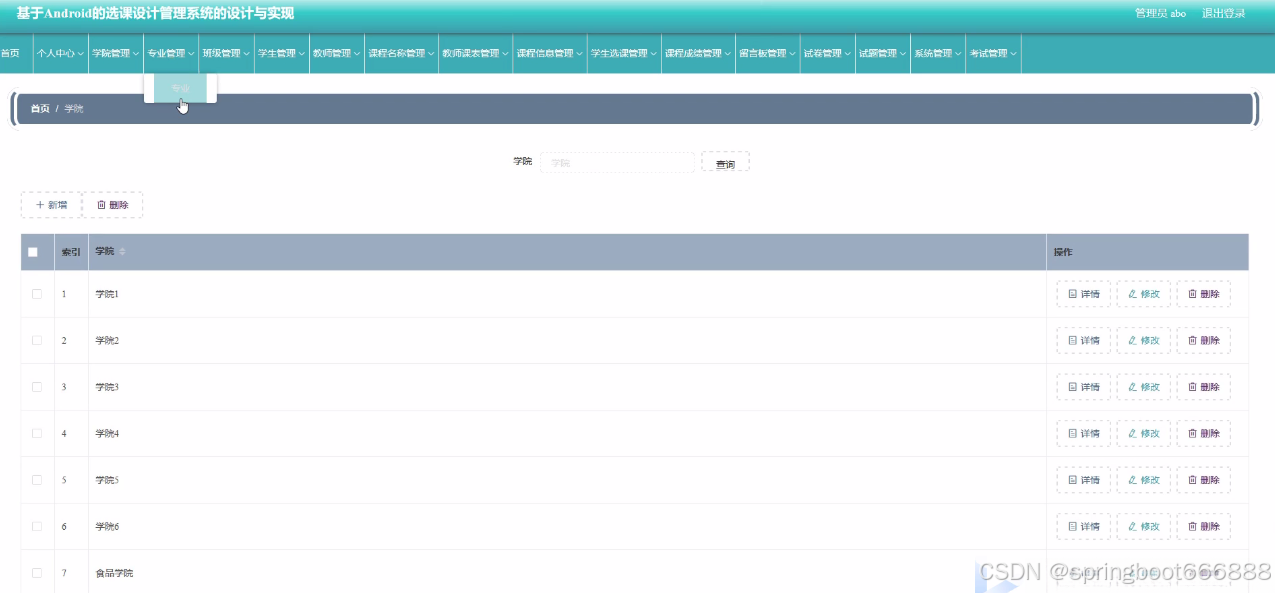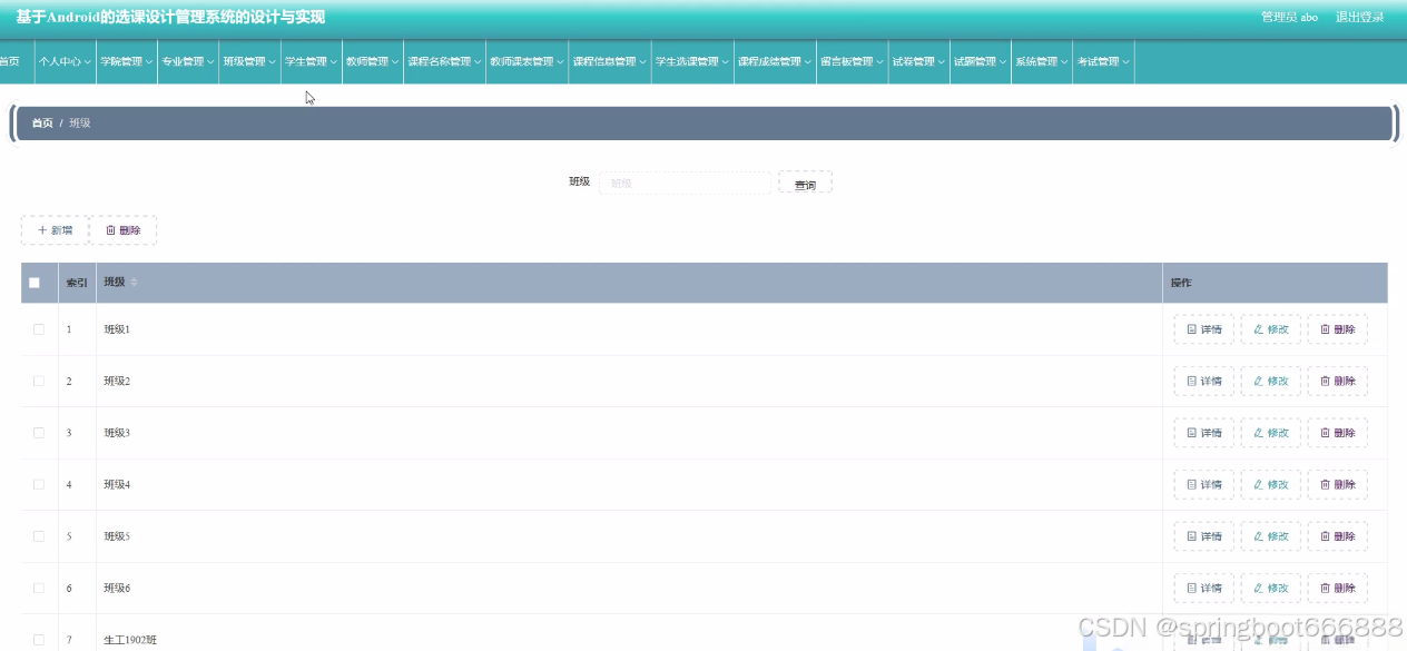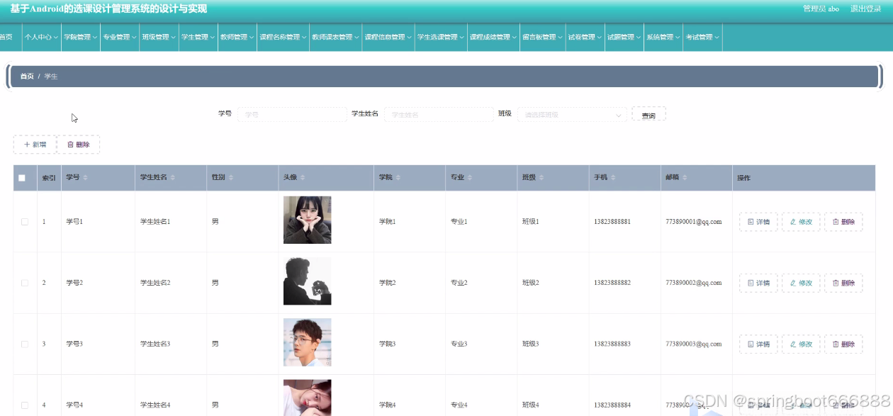 3、详细界面:通过文字图片显示当前的课程信息、学生选课、课程成绩等信息;