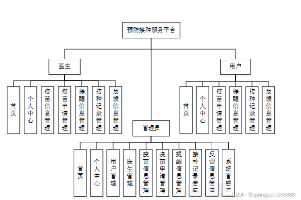系统架构图属于系统设计阶段,系统架构图只是这个阶段一个产物,系统的总体架构决定了整个系统的模式,是系统的基础。预防接种服务平台的整体结构设计如图4-2所示。