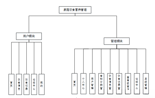 系统架构图属于系统设计阶段,系统架构图只是这个阶段一个产物,系统的总体架构决定了整个系统的模式,是系统的基础。家庭饮食营养管理的整体结构设计如图4-2所示。